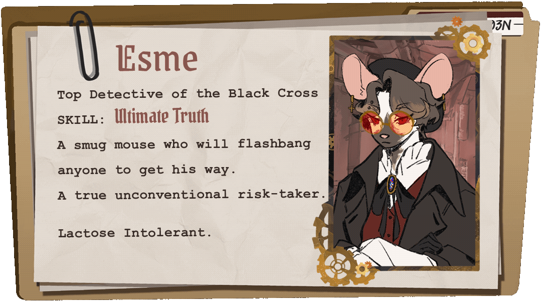 Follow the unconventional duo; the ever smug and top detective Esme, the mouse. Join him and his partner, the hot-blooded rookie detective, Elio, the wolf, as they embark on the twisted murder case of Cinderedge's beloved Formula 2 racing star.